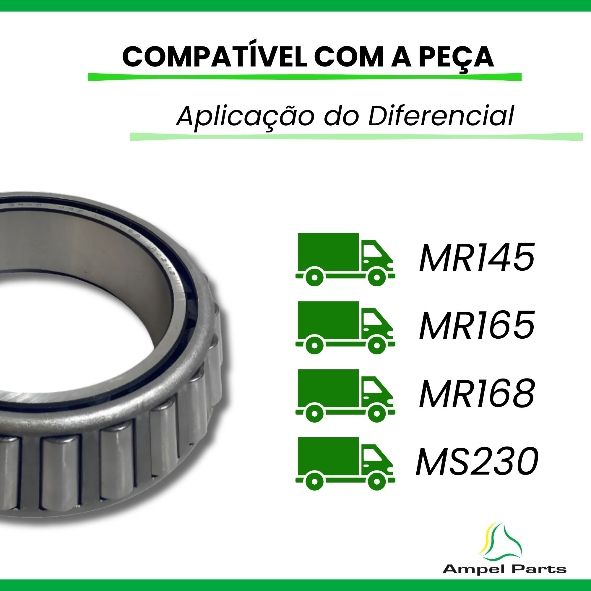 Utilizado em diferenciais de caminhões e sistemas de transmissão que utilizam rolamento padrão 594A / 592A.